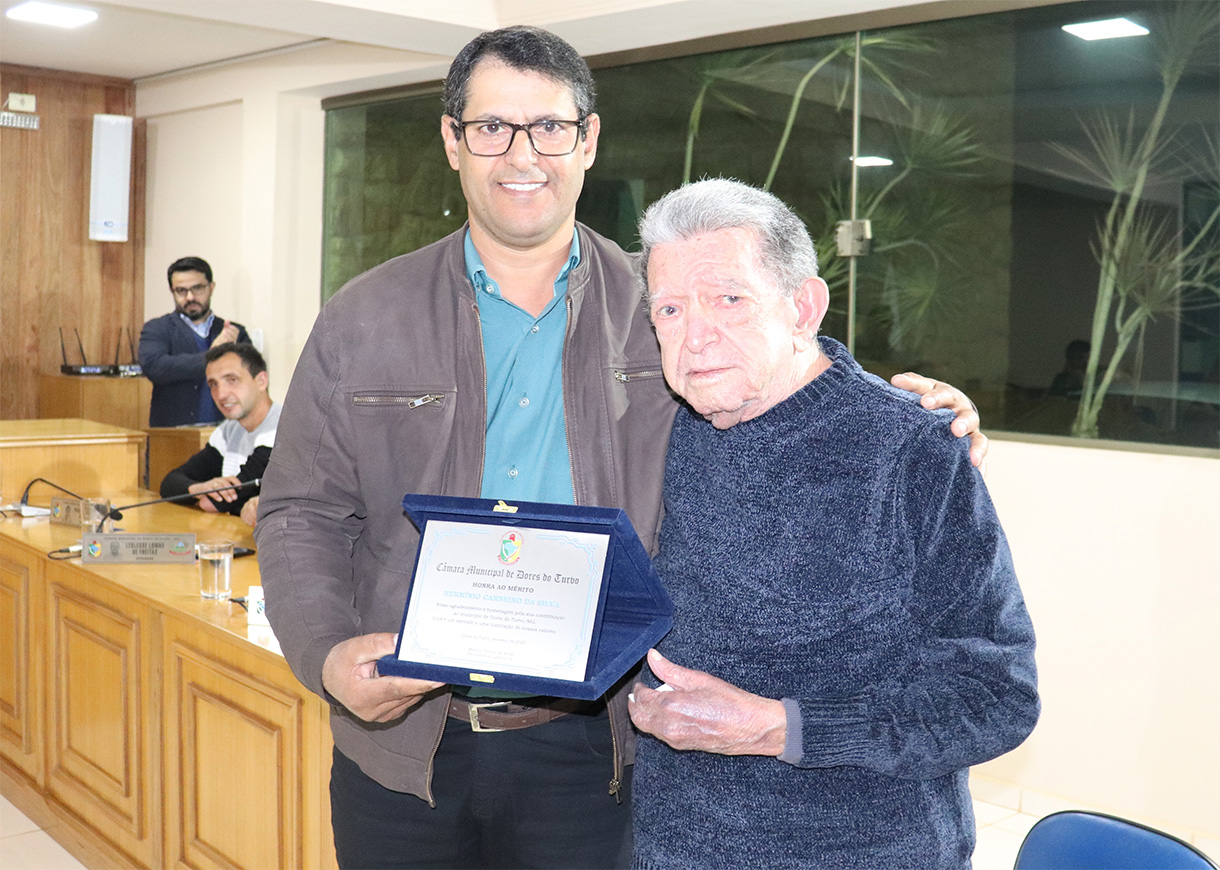 A Câmara Municipal de Dores do Turvo por iniciativa do Presidente, vereador Marcílio Franco da Mota, entregou no dia (14/7) em Sessão Solene os Títulos de Cidadania Honorária Dorense e Honra ao Mérito aos agraciados:Luiz Rosa Ferreira e Hermínio Carneiro da Silva,pelos relevantes trabalhos realizados na comunidade.
